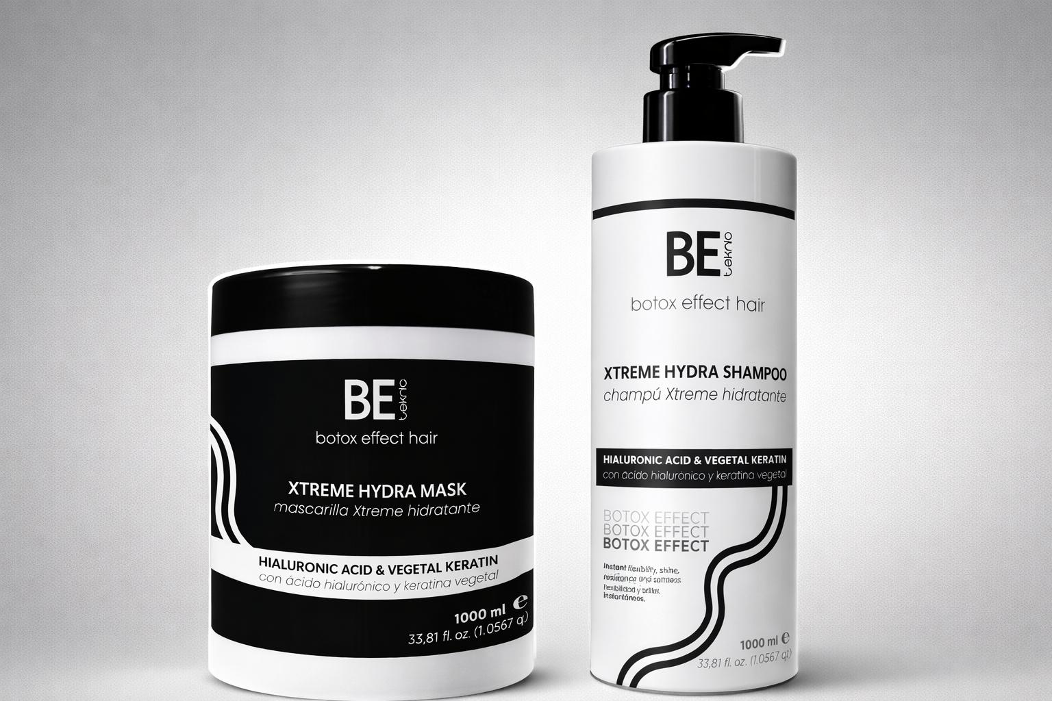 El dúo BE Tekno Xtreme Hydra está diseñado para restaurar la hidratación, la flexibilidad y la suavidad del cabello sensibilizado o carente de agua. Su fórmula avanzada combina ácido hialurónico y queratina vegetal, dos activos clave para rellenar la fibra capilar, mejorar la elasticidad y aumentar la resistencia frente a roturas y procesos químicos.