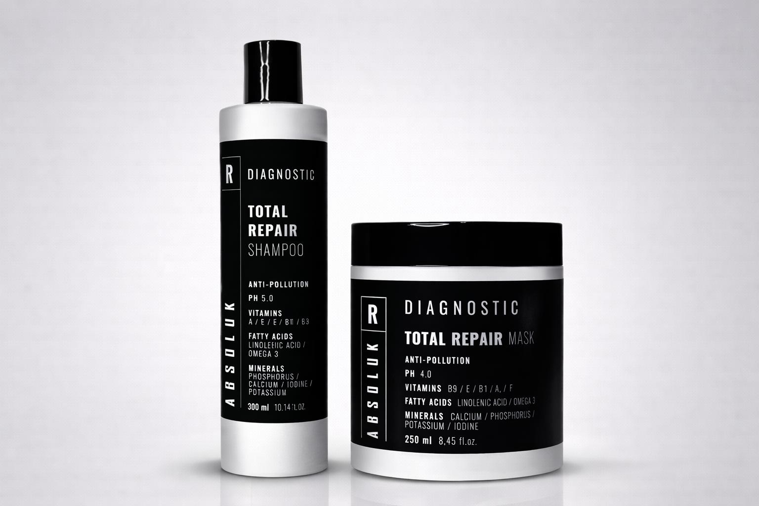 El Pack Total Repair Absoluk Diagnostic está formulado para restaurar la fibra capilar dañada, debilitada o expuesta a agentes externos. Su acción reparadora actúa desde la cutícula hasta la estructura interna del cabello, mejorando la resistencia, la elasticidad y el brillo natural.